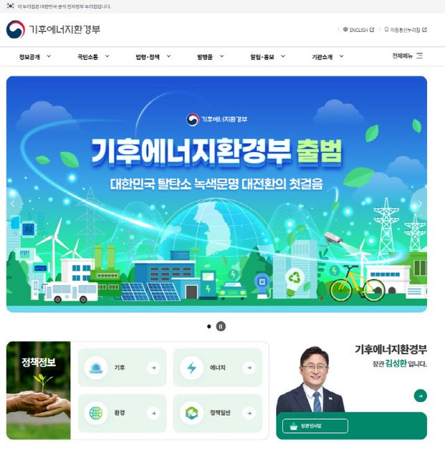 기후부는 기존 환경부와 산업통상자원부(현 산업통상부) 에너지 부문을 통합하는 형태로 이달 1일 정식 출범했으나 정부 시스템 마비로 새 홈페이지를 열지 못해 왔다.