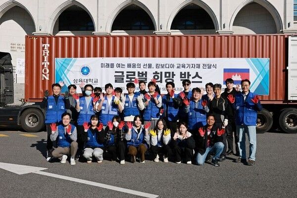 삼육대는 이날(27일) 오전 교내 대강당 앞에서 캄보디아에 후원 물품을 보내는 '글로벌 희망 박스(Global Hope Container)' 선적 행사를 개최했다.