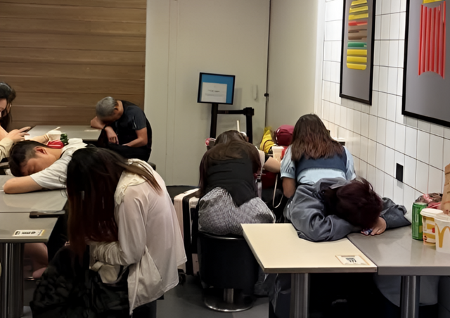 홍콩의 한 누리꾼은 “중국인들의 맥도날드 점유율이 1000%인데, 정작 호텔은 텅 비었다”며 사진 여러 장을 공개했다. 사진 속 관광객들은 매장 테이블과 계단에서 깊은 잠에 빠져 있었다.
