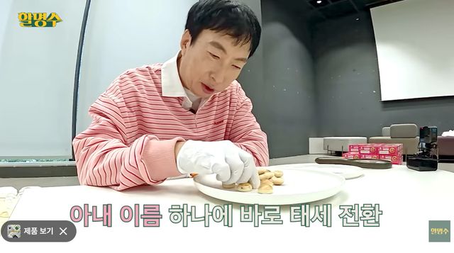 영상에서 박명수는 칸쵸 2000개를 오픈, 지인 이름 찾기에 나섰다. 첫 번째 발견한 이름은 무려 아내 이름인 '수민'. 이에 그는 "오 아는 사람 바로 나왔다. 재밌네"라며 열정을 불태웠다.