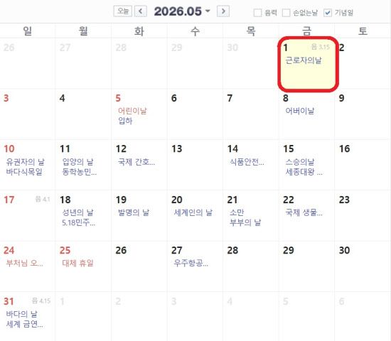 한편 노동절이 공휴일로 지정될 시 연차 1회 사용만으로 최장 5일의 황금연휴를 즐길 수 있어 기대감이 커지고 있다.
