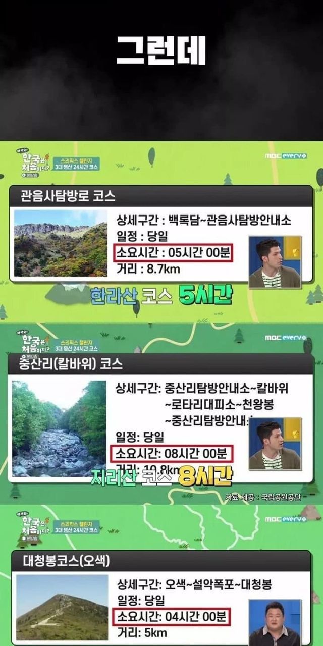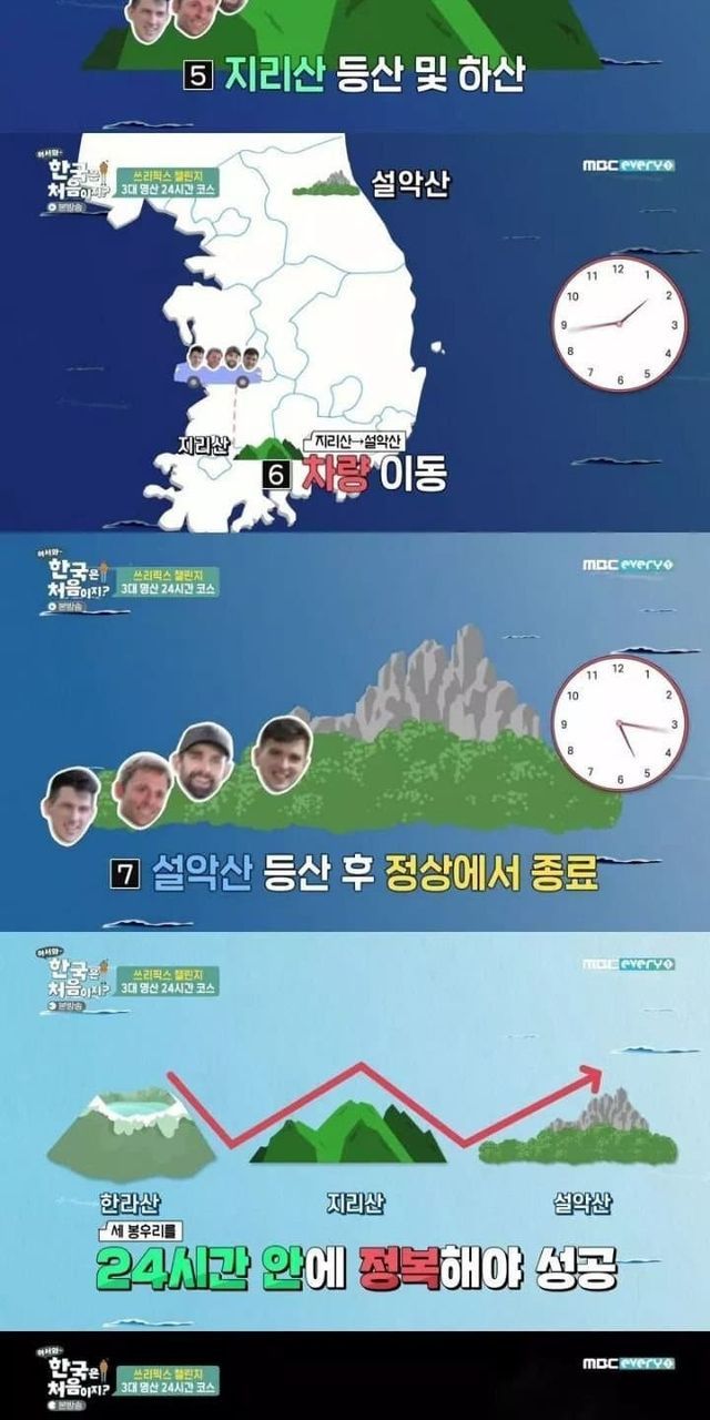 설악산 지리산 한라산을 24시간 이내에 완주하시오