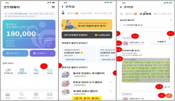 이 사업은 도서관과 지역화폐를 연계한 참여형 독서 플랫폼으로 참여자는 굿뜨래페이 앱 내에서 독서 활동을 기록하고 공유하며 다양한 독서 미션을 수행할 수 있다. 1일 300원, 3일 이상 1천원, 5일 이상 주민에게는 3천원 상당의 굿뜨래페이 포인트를 지급한다.