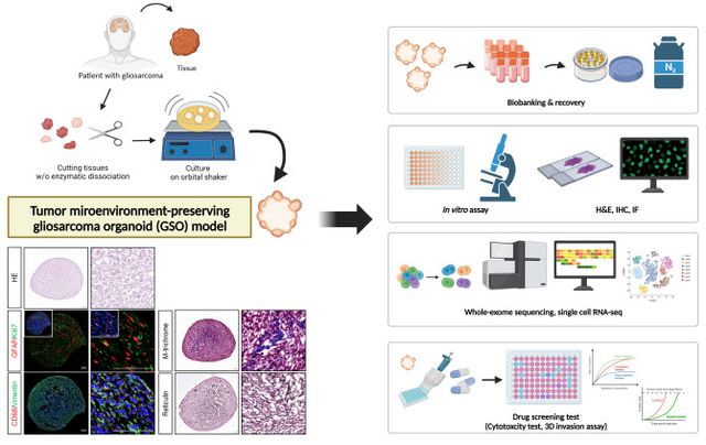 이번 연구에서 공동 연구팀은 수술 직후 얻은 환자의 종양 조직(fresh tissue)을 활용해, 세포들이 서로 달라붙지 않도록 만든 특수 배양기법(ultra-low attachment culture system)과 orbital shaker라는 장비를 이용해 환자 맞춤형 오가노이드(GSO)를 성공적으로 배양했다.