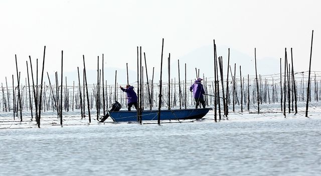 지주식 김 양식장에서 어민들이 김 채취를 하고 있다. 기사 이해를 돕기 위한 자료 사진 / 뉴스1