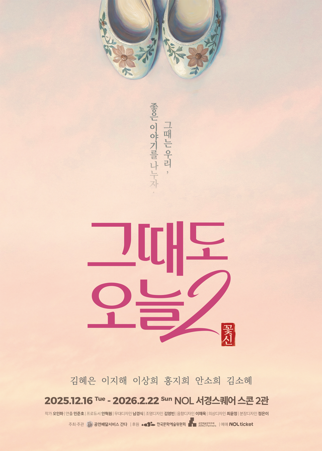 ‘그때도 오늘’은 2022년 초연 당시 예매처 평점 9.8을 기록하며 호평을 받았다. 고양, 세종, 인천, 부산 등 전국 순회공연으로 이어졌으며, 지난해에는 극단 20주년 기념 공연으로 무대에 오르기도 했다. 이번 후속작 ‘그때도 오늘2: 꽃신’은 전작의 서정적인 언어를 계승하면서도, 여성 서사를 강화해 작품의 깊이를 더했다.