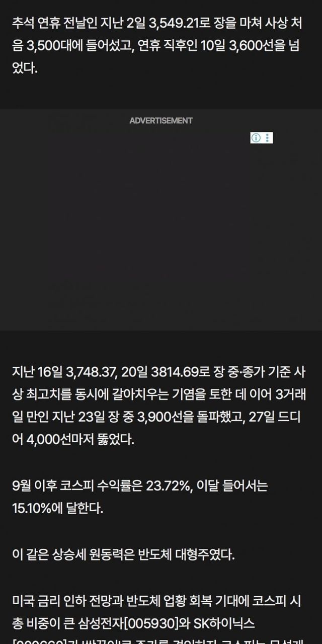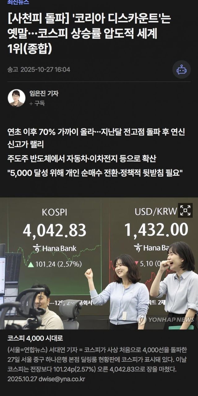 '코리아 디스카운트'는 옛말…코스피 상승률 압도적 세계 1위