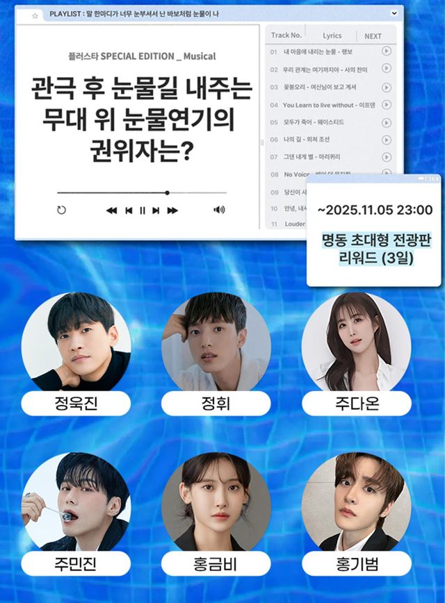 ‘내 스타 응원의 모든 것’ 스타 투표 웹서비스 플러스타(plustar) 측은 “관극 후 눈물닦기, 얼굴에 난 눈물길 지우기 바쁜 관객들. 관극 후 관객들 눈에 눈물 펑펑 쏟게 하는 무대 위 눈물연기의 권위자는 누구인가요?”를 주제로 투표 페이지를 오픈했다.