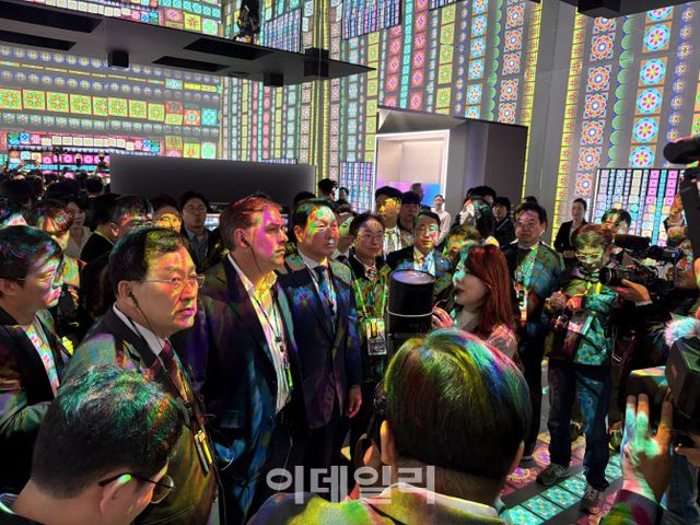 이후 삼성전자 부스로 이동한 이들은 삼성전자가 이날 처음 실물을 공개한 트라이폴드 실물을 감상했다. 트라이폴드는 기존 접이식 ‘폴드’ 시리즈에서 한 단계 진화한 모델이다. 화면을 한 번이 아니라 두 번 접을 수 있는 구조다. 최 회장은 특히 메타 부스에서 스마트글래스 ‘레이밴 메타’를 직접 써보기도 했다.