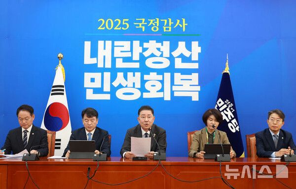 뉴시스 보도에 따르면, 김병기 원내대표는 이날 오전 국회에서 열린 국정감사 대책회의에서 "APEC 정상회의는 세계 경제질서가 새롭게 재편되고 한반도 안보 방향이 결정되는 분수령이 될 회의"라며 "한미관세 협상, 미중 담판, 한일·한중 관계 등 굵직한 의제가 많다"고 말했다.
