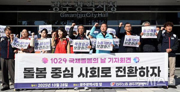 뉴시스 보도에 따르면, 민주노총 광주본부는 이날 오후 광주시청 앞에서 기자회견을 열고 "돌봄노동자 대다수가 고용불안과 최저시급으로 생존권을 위협받고 있다"며 이같이 밝혔다.