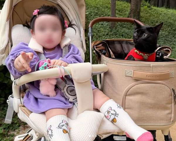 사진 속 박재이 양은 박수홍, 박수홍의 반려묘 다홍이와 나들이에 나선 모습이다.