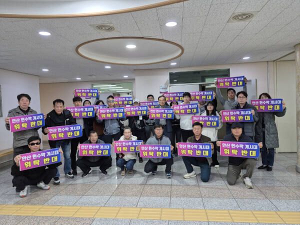 한편, 같은 날 안산시 옥외광고물협회도 시의회 앞에서 민간위탁 추진에 반대하는 집회를 진행했다.