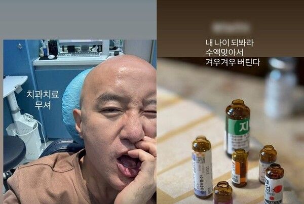 그는 "치과 치료 무서워"라는 문구를 덧붙이며 긴장한 표정을 지었다.