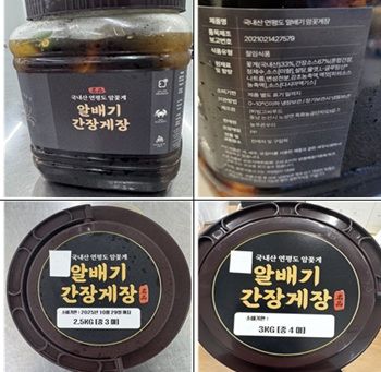식품의약품안전처(처장 오유경)는 식품제조․가공업체인 ‘(주)빙고씨푸드(충청남도 논산시 소재)’가 제조하고 유통전문판매업체인 ‘늘푸른우리(경기도 화성시 소재)’가 판매한 ‘국내산 연평도 알배기 암꽃게장(식품유형: 절임식품)’에 알레르기 유발물질이 표시되지 않은 것이 확인되어, 판매 중단하고 회수 조치한다고 밝혔다.
