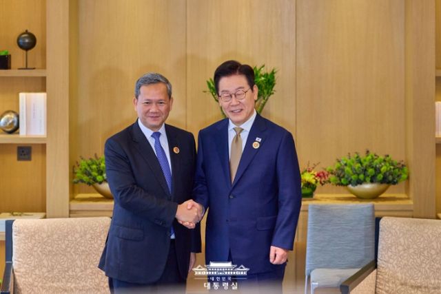 [파이낸셜경제=김예빈 기자] 이재명 대통령은 27일 오전 제47차 아세안 정상회의 참석을 계기로 ‘훈 마넷’ 캄보디아 총리와 취임 후 첫 양자회담을 가졌다.
