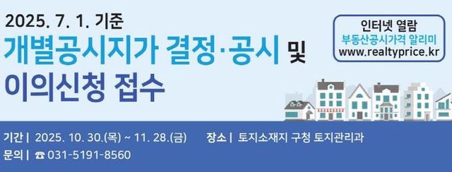 [와이뉴스] 수원시 영통구는 2025년 7월 1일 기준 개별공시지가를 10월 30일 결정·공시하고, 11월 28일까지 이의신청 기간을 운영한다. 이번에 결정·공시되는 대상은 올해 1월 1일부터 6월 30일까지의 토지 분할, 합병, 지목변경 등 변동 사항이 있는 58필지이다.