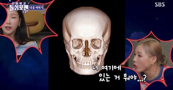 이어 공개된 얼굴뼈 사진에서 가운데 코 안에 기둥 같은 것이 보였다.