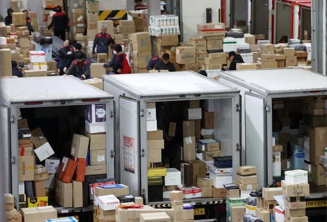 택배센터에서 상차 작업 중인 택배 기사들 / 뉴스1