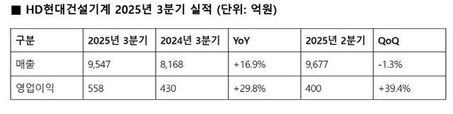 HD현대건설기계 관계자는 “건설기계 시장이 지난 2분기 실적 반등에 이어 회복세로 전환했다”며 “글로벌 생산거점별 생산 전문화를 통해 원가 경쟁력을 강화하고, 지역별 맞춤형 제품 포트폴리오로 수익성을 지속 확대하겠다”고 했다.