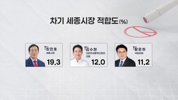 세종시장, 최민호 19.3% 김수현 12.0% 황운하 11.2%