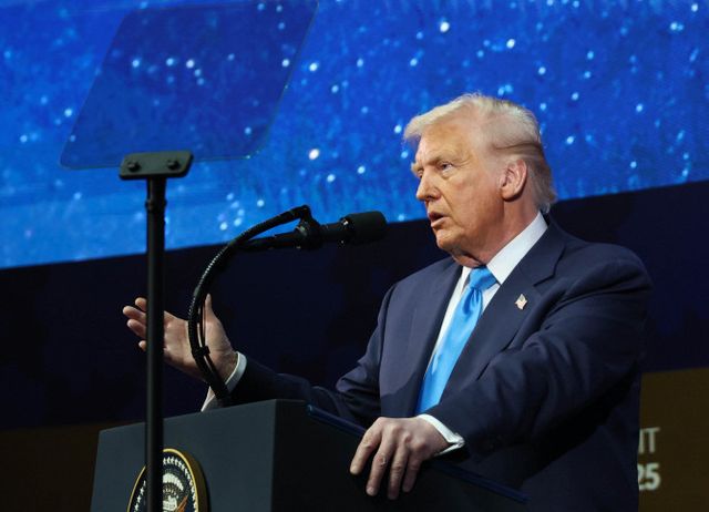 도널드 트럼프 미국 대통령이 29일 경주예술의전당에서 열린 2025 아시아태평양경제협력체(APEC) 정상회의 최고경영자(CEO) 서밋에 참석해 연설하고 있다. ⓒ 대한상공회의소