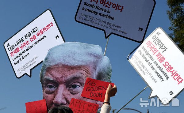 뉴시스 보도에 따르면, 2025 APEC반대 트럼프반대 국제민중행동 조직위원회(국제민중행동)는 이날 오전 경주시 동천동 구황교 인근에서 기자회견을 열고 "모든 국제적 행사를 무시하고 자기 입맛대로 쓰고 버리는 트럼프를 강력히 규탄한다"고 밝혔다.