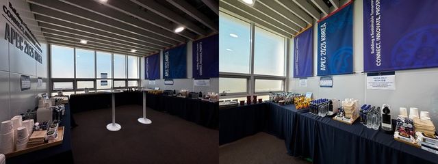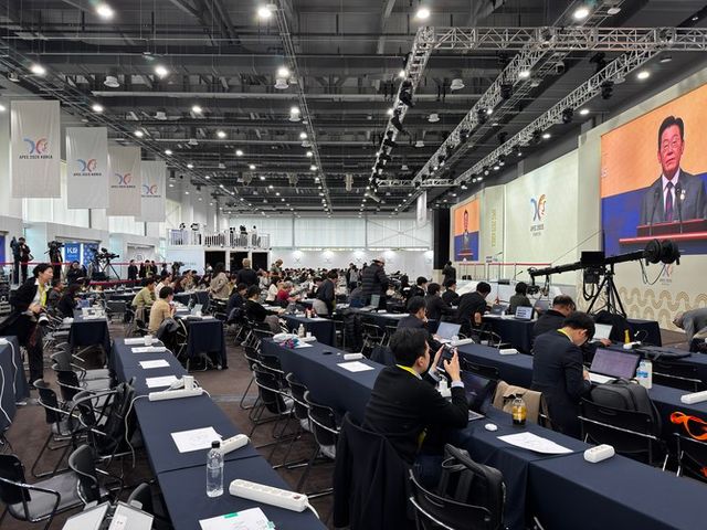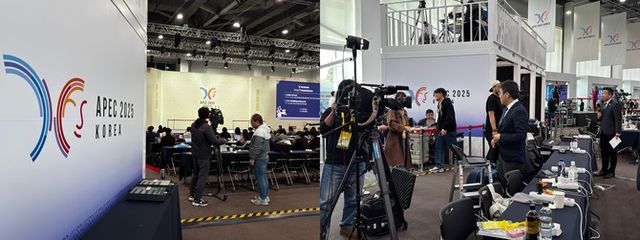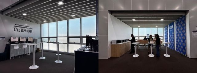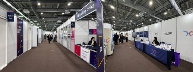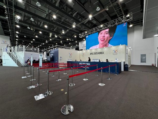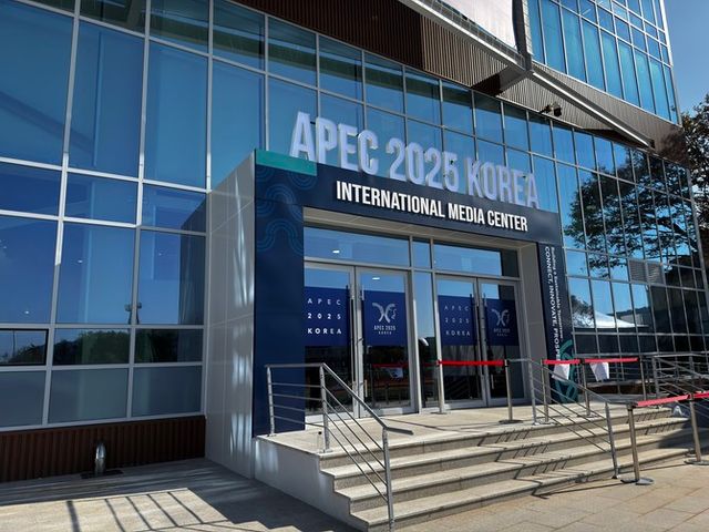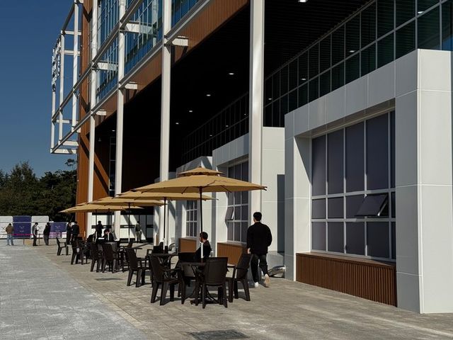 경주 화백컨벤션센터 야외 전시장에 마련된 APEC 국제미디어센터 전경. = 김주환 기자