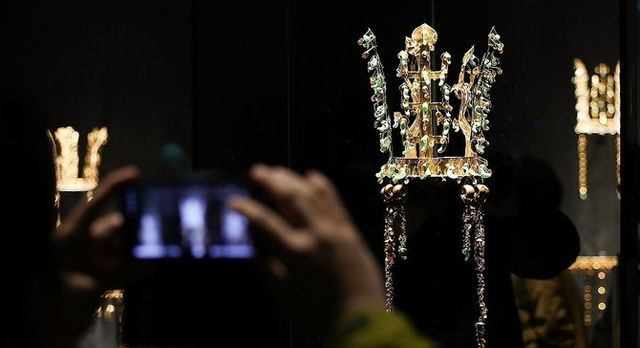 지난 27일 국립경주박물관에서 열린 APEC 정상회의·박물관 개관 80주년 기념 특별전에서 신라 금관이 공개되고 있다. ⓒ 연합뉴스