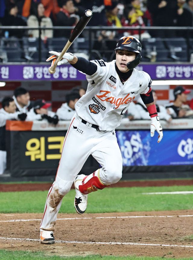 이날 경기도 순탄하지 않았다. 7회말 하주석의 1루 대주자로 처음 KS 무대를 밟은 심우준은 2루 도루를 시도했지만 LG 포수 박동원의 송구에 막혀 아웃됐다. 고개를 숙인 채 더그아웃으로 향하는 그를 향해 팬들의 아쉬운 탄성이 쏟아졌다.