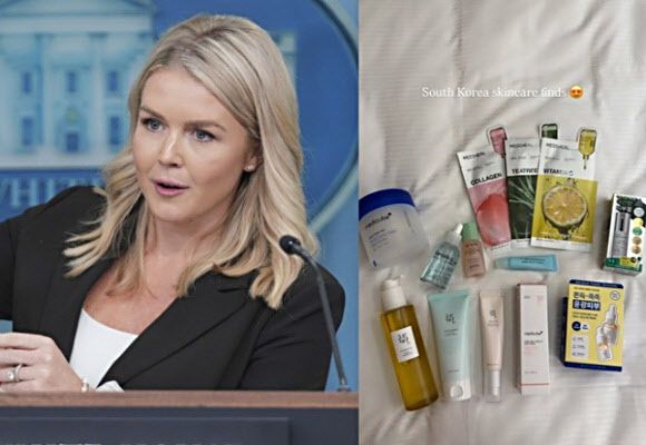 29일 레빗 대변인은 인스타그램에 클렌징 오일, 마스크팩, 에센스 등 한국 화장품 12개를 모아놓은 사진을 올렸다.