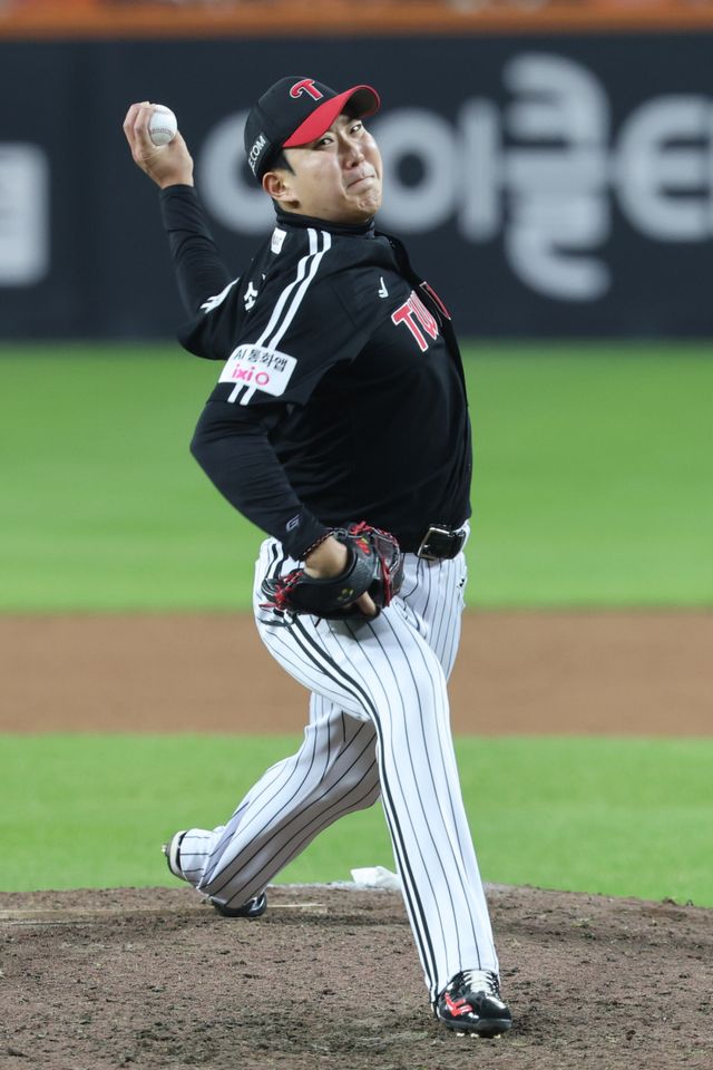 손주영은 지난 29일 대전 한화생명볼파크에서 열린 한화와의 KS 3차전에 선발 등판해 5이닝 동안 4피안타 1실점을 기록했다.