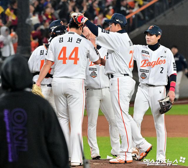 총 10안타가 나온 타선에서는 최재훈이 2안타 2타점, 문현빈이 2안타 1타점으로 돋보였고, 대주자로 들어서 도루실패를 기록했던 심우준이 3-3 동점이던 8회말 적시타로 결승타의 주인공이 됐다. 손아섭과 채은성, 김태연도 1안타 1득점으로 힘을 보탰다.