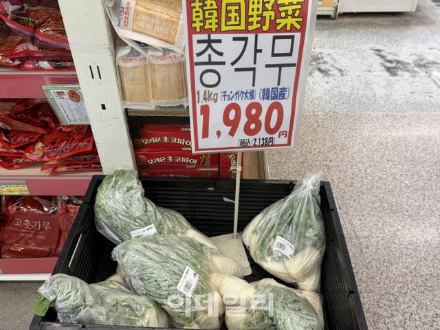 실제 마트에서도 인기 있는 코너는 김치와 신선식품 코너다. 매장 안쪽 벽면에는 ‘종가 김치’와 마트 자체 제조 김치가 빼곡히 진열돼 있고, 신선식품 코너 한쪽에는 깻잎·미나리 등 한국산 농산물이 자리했다. 김장철을 앞두고는 한국산 무 판매도 시작했다.