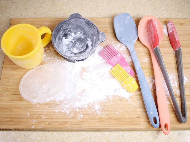 실리콘 조리도구에 베이킹소다를 골고루 묻혀요.