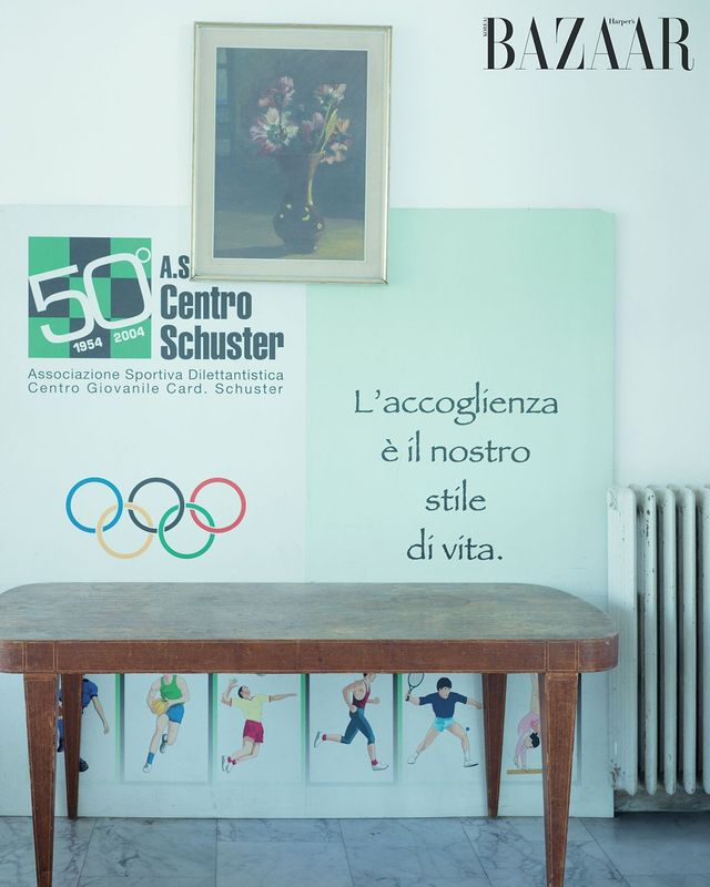 포플린 셔츠, 저지 톱, 팬츠, 벨트, 슈즈는 모두 Prada.
