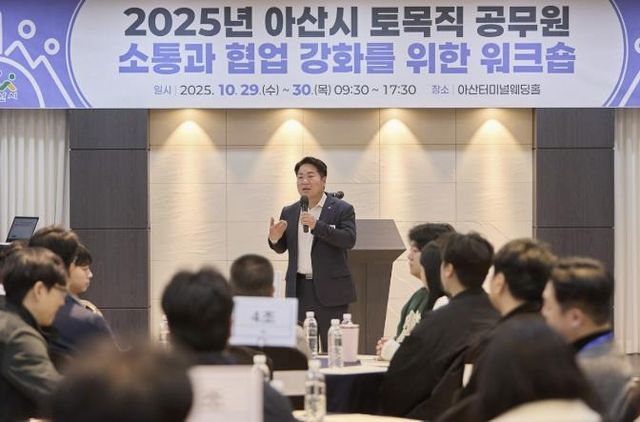 [파이낸셜경제=김영란 기자] 아산시는 현장 중심의 행정역량 강화와 직렬 간 협업체계 구축을 위해 29일 아산터미널웨딩홀에서 ‘2025년 토목직 공무원 워크숍’을 개최했다.