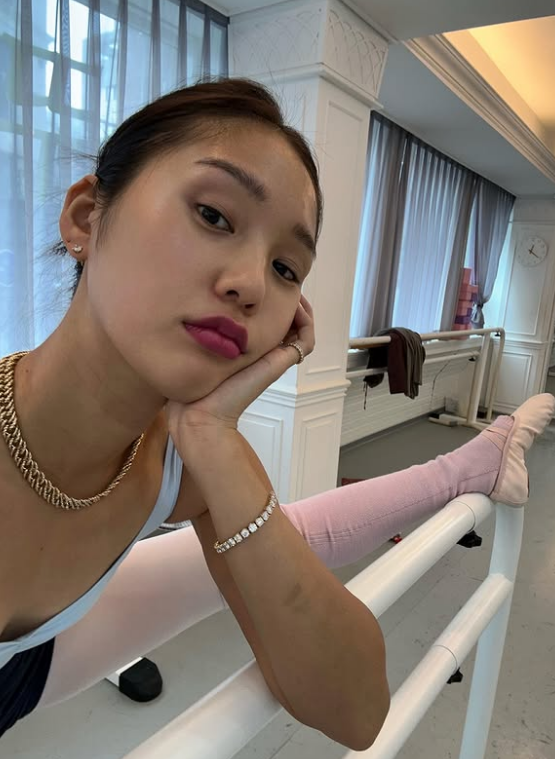 공개된 사진 속 미미는 발레복 차림으로 연습실에서 스트레칭과 포즈를 취하며 우아한 자태를 뽐내고 있다. 연핑크 레그워머와 클래식한 발레 슈즈, 그리고 특유의 세련된 스타일링이 어우러져 시선을 사로잡는다.