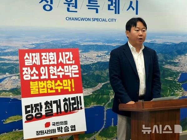국민의힘 박승엽 경남 창원시의원이 실제 집회 시간과 장소가 아닌 곳에 장기간 설치돼 있는 불법 현수막 철거를 촉구하고 나섰다.