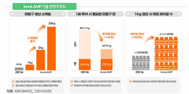 지투지바이오는 이미 오송 본사 내 공정 테스트 시설과 복지부 산하 K-바이오 GMP 설비에서 임상용 시료를 생산하고 있으며, 자체 스케일업 시스템을 통해 최대 20kg까지 생산이 가능하다. 경쟁사 대비 약 7~8배 수준의 생산 능력을 확보한 상태다.