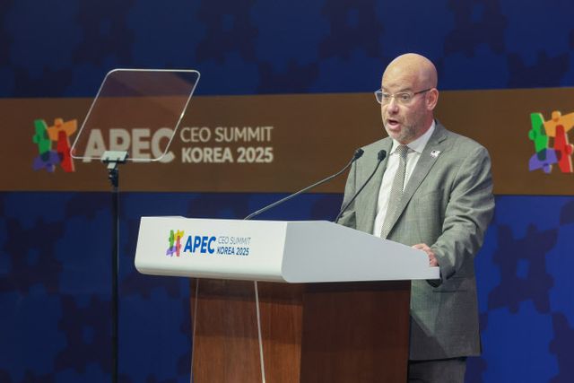 에릭 에벤스타인 틱톡 공공정책 미주 총괄은 30일 경북 경주 예술의전당에서 열린 ‘2025 아시아태평양경제협력체(APEC) CEO 서밋’에서 ‘신뢰 기반 성장으로 아태지역 디지털 시장 개발’을 주제로 연설했다.