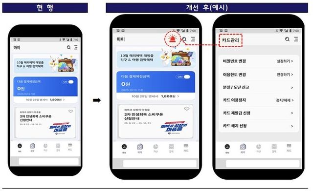 카드관리 메뉴 접근성도 높아진다. 카드를 해지할 때 미납대금 처리, 잔여포인트 안내, 자동납부 변경 필요 안내 등 필수 고객 안내사항도 웹이나 앱으로 대체된다. 필수 안내사항을 고객이 확인하고, 미납대금을 모두 납부하면 상담원과 통화하지 않아도 카드사에 있는 유일한 카드도 해지할 수 있게 된다.