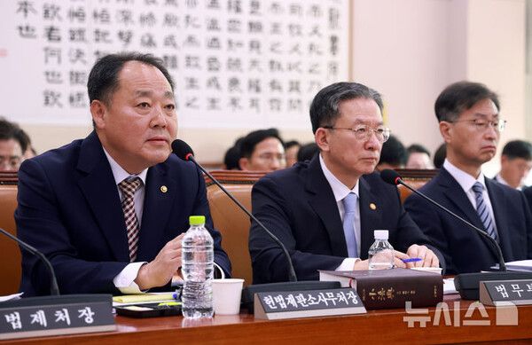 대법관인 천대엽 법원행정처장은 송석준 국민의힘 의원이 재판소원 도입 동의 여부를 묻자 "어느 여당 위원께서 말씀하신 것처럼 소송 지옥이 될 수밖에 없다"고 말했다.