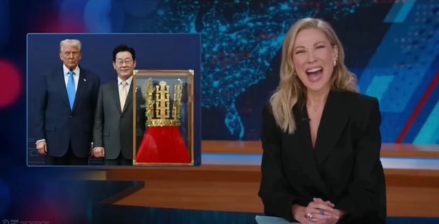 환한 미소를 급히 거두고 정색한 진행자는 "여기요, 대한민국 뭐 하는 거예요? 진지하게 우리는 대통령을 '왕'이라는 개념에서 벗어나게 하려고 정말 열심히 노력해 왔습니다"라며 (그런데 이제) 모두가 와서 '트럼프 대통령님! 이 멋진 왕관 좀 보세요'라고 말할 겁니다. '써보세요', '집으로 가져가세요'라고 (말할 겁니다)"라고 꼬집었다.