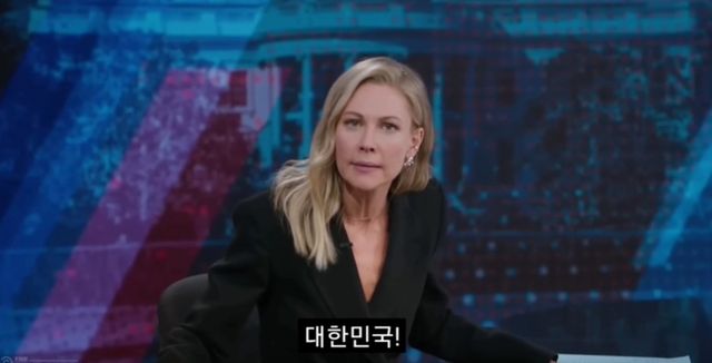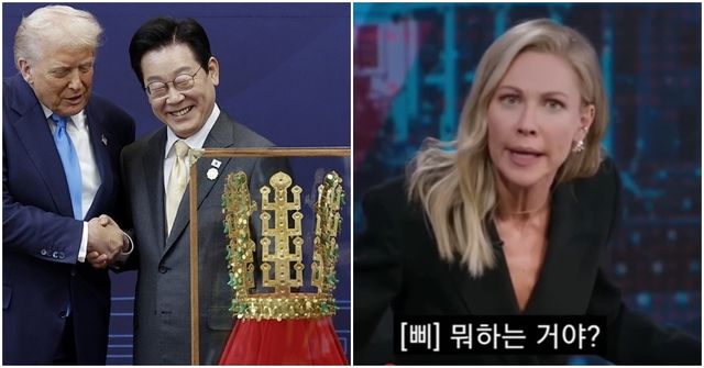 금발 여성 진행자는 "황금 왕관! 우리 대통령을 위한 정말 사랑스럽고 사려 깊은 선물이네요"라고 비꼬며 "한국, 잠깐 여기서 얘기할 수 있을까요?"라고 의자를 돌려 카메라 방향을 바꿨다. 본격적인 논평에 들어간 것.