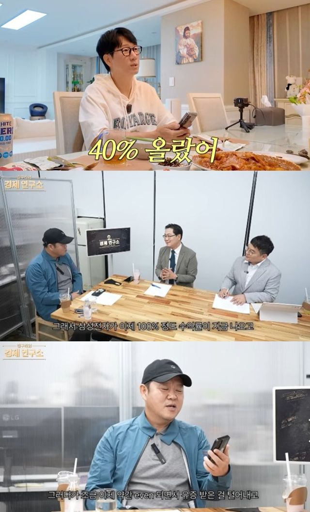 한편 '금테크'에 성공한 김구라는 최근 주식 투자에서도 남다른 '금손'을 자랑했다. 유튜브 채널에서 김구라는 "나는 수익률이 좋은 게 밑단에 있는데, 밑단에 삼성전자가 있다"며 "삼성전자 수익률이 100% 정도 나온다"고 깜짝 고백했다.