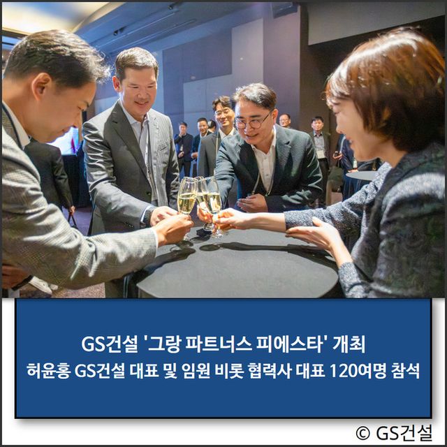 GS건설(006360)이 서울 역삼동에 위치한 GS타워 아모리스홀에서 허윤홍 대표를 비롯한 경영진과 협력사 대표들이 참석한 가운데 협력사와 소통을 위해 마련한 대표적인 상생협력행사 '그랑 파트너스 피에스타(Gran Partners Fiesta)'를 개최한다.