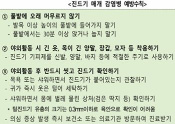풀밭에 30분 이상 앉거나 눕지 않으며, 발목 이상 높이의 풀밭에는 들어가지 않는 것이 좋다.