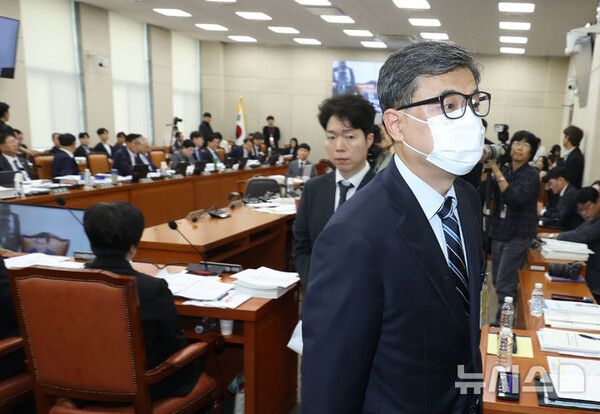 앞서 민주당 의원인 신정훈 국회 행안위원장은 이날 국정감사 증인 선서 전 "지난 14일 국감에 이어 또 다시 사전 허가를 받지 않고 마스크를 쓰고 있어 신분을 확인할 수 없는 기관 증인이 있어서 신분을 다시 확인하도록 하겠다"며 황 국장에게 신분 확인을 요청했다.