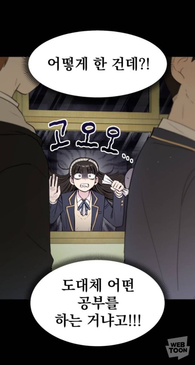 그때 뒤에서 들려오는 목소리. "이번에 모의고사 성적 봤어요? 이번에도 이과에서 만점이 나왔던데. 역시 남연고는 이과가 최고죠~" 그 말에 다른 사람이 문과 애들이 서운해한다며 말리는데요. 열받은 소연은 "아니거든요? 문과도 잘하거든요?"라고 생각하며 노려봅니다. 준수를 향해 속으로 "김준수만 아니면 이과건 뭐건 다 내 아래잖아... 왜 이런 말을 들어야 하는 거야? 거슬린다고... 다시는 비교 당할 일 따위 없게... 다음 모의고사는 반드시 내가 이겨주겠어. 무슨 수를 써서라도...!"